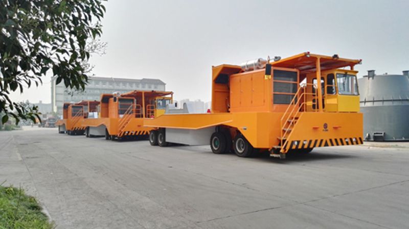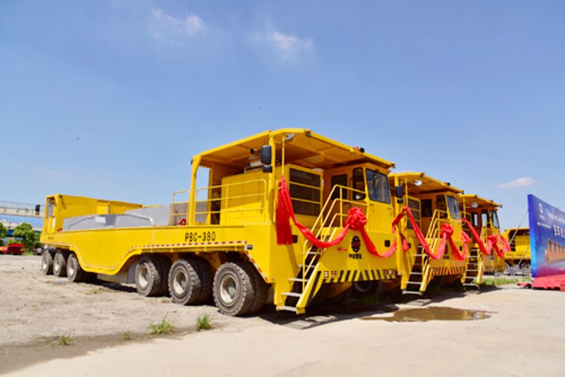 PBC系列大噸位搬運車是專為冶金大物流工藝而配套開發的冶金專用工程機械;已廣泛應用在冶金高溫液態金屬、廢鋼、料籃、成品鋼卷(板坯)等物料的搬運工藝中;該系列產品按照結構特點可分為整體式、鉸接式、拖拉式三類;整體式搬運車采用多軸線、液壓懸掛結構,全液壓動力系統;產品載重能力:60—380噸可選;鉸接式搬運車采用鉸接式車體結構,液力機械傳動系統;產品載重能力60—150噸可選;拖拉式搬運車采用專用牽引底盤牽引,配以單列或多列具有雙向牽引的拖掛車,二者組合實現大噸位搬運;產品載重能力20—120噸可選;產品可按用戶需求提供遙控操縱、載荷稱量、應急系統等功能選配。